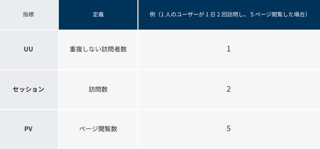 UUとセッション数・PVとの違い