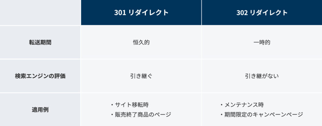 301リダイレクトは、URLを恒久的に変更する際に使用されます。検索エンジンの評価を引き継ぐため、サイト移転時や販売終了商品のページのリダイレクトに適しています。
