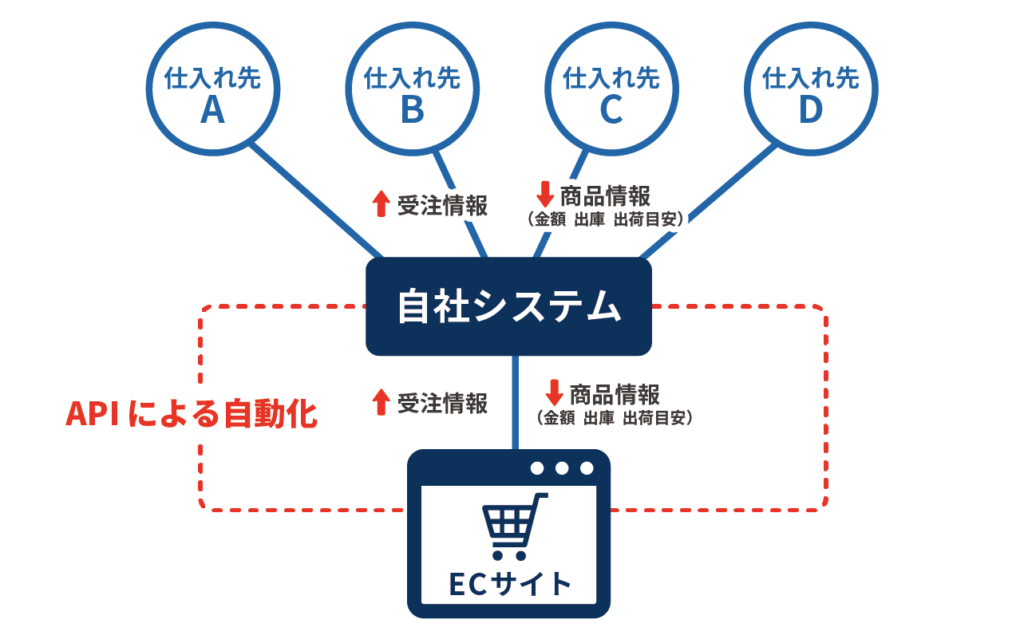 今回のケースは、仕入れ先が100箇所を超えるため、一般的な店舗連携ツールでは対応できないこともあり、店舗さん側で独自にシステムを開発されていました。