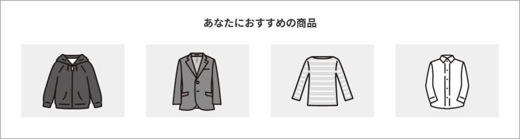 ユーザーが過去に購入した商品や閲覧した商品をもとに、個別のおすすめ商品を表示することができます。例えば、ファッションジャンルのネットショップでは「あなたにおすすめの商品」セクションを作り、ユーザーが興味を持ちやすい商品を提案します。