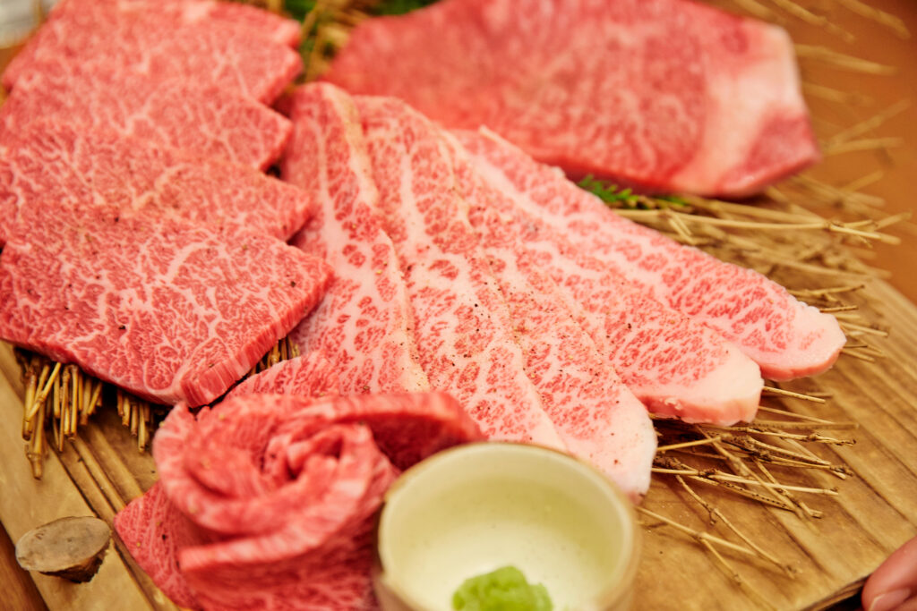 また、松阪⽜は、地元三重と芝浦でしか取引されず、芝浦では毎週⽉曜⽇が松阪⽜の競りの⽇と決まっています。今⽇がちょうど⽉曜⽇なんですけど、さっき市場にいる知り合いから「今⽇すごくいい⽜⼊ったんだけど、どうする?」って連絡が来ていました。いつも最上級の⾁を仕⼊れていますが、そういう話を聞くと、⼀体どんな⽜だ?と興奮しますね(笑)そして、ごく稀に「これは絶対に⼿に⼊れたい︕」と惚れ込む素晴らしいものに出会うことがあり、それを競り落とせたときはめちゃくちゃ嬉しいです。