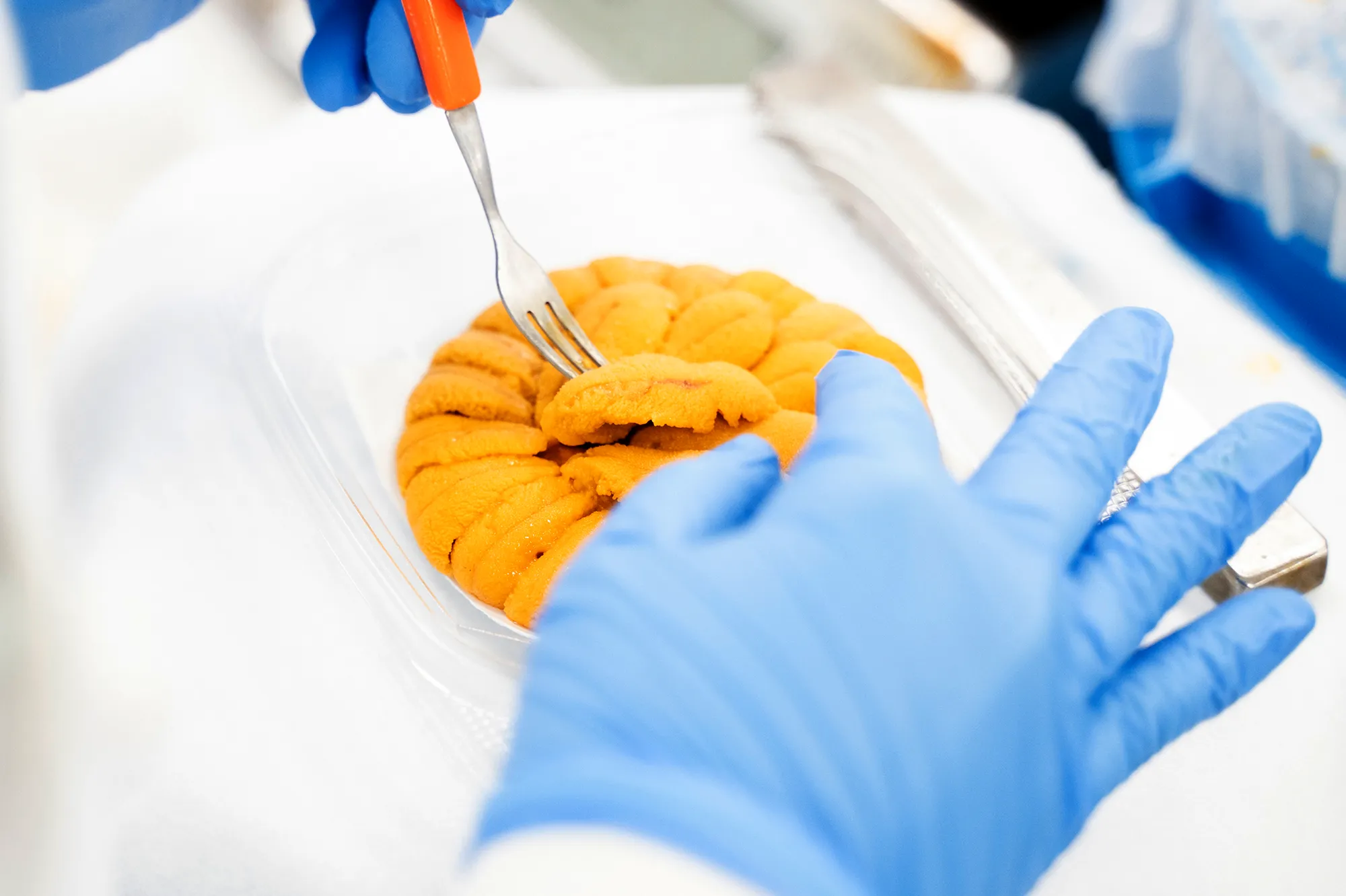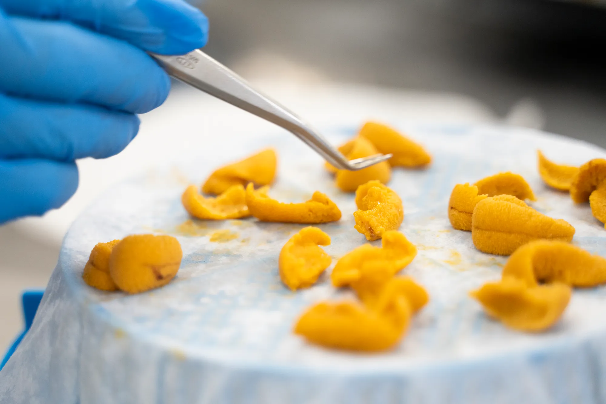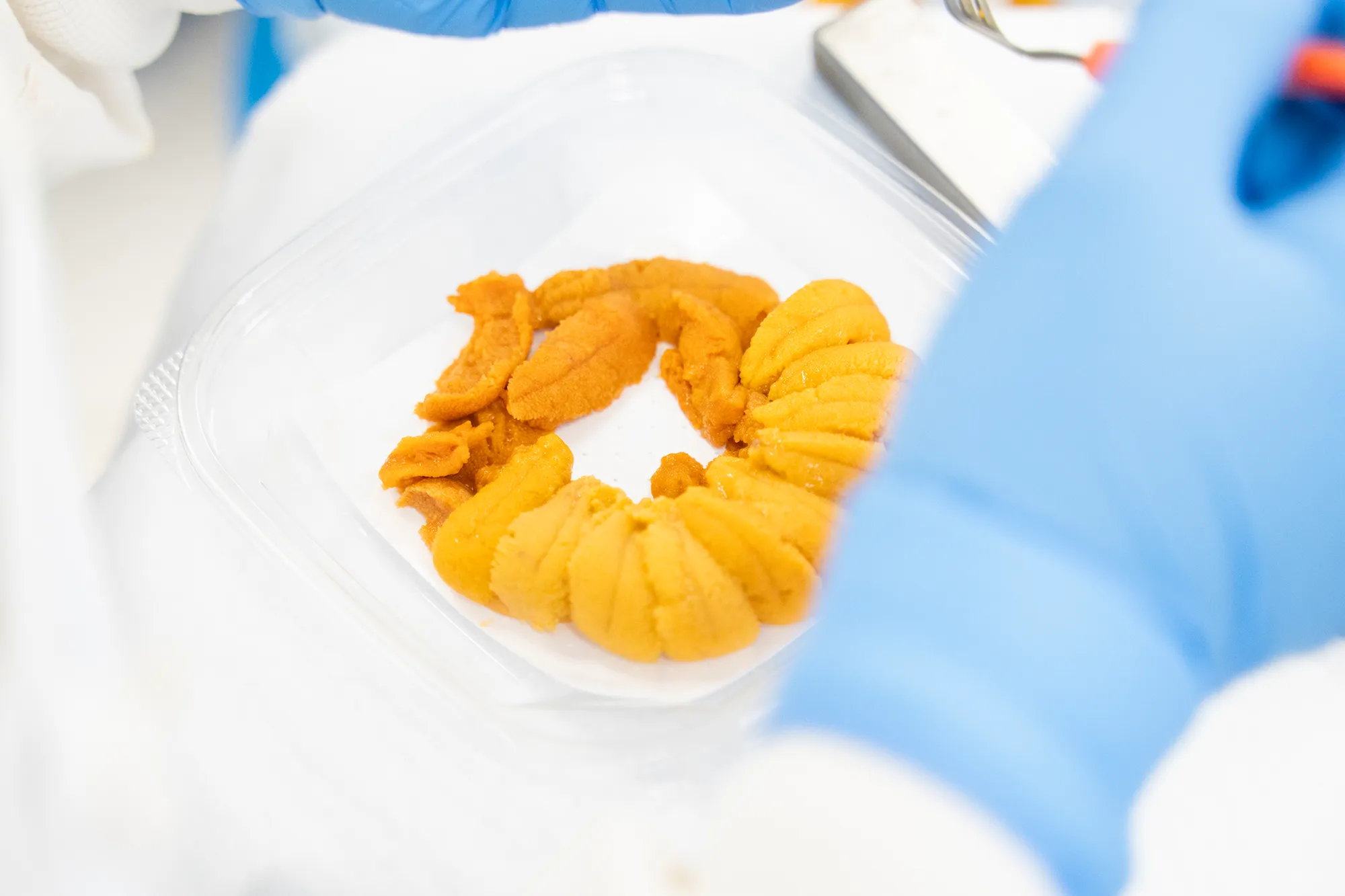 石垣様:当社では年間を通して安定した仕入れを実現するため、季節に応じて複数の産地のうにを使用しており、産地によって、大きさ、固さ、色の違いがあるので加工方法を微調整し、安定した品質を保っています。